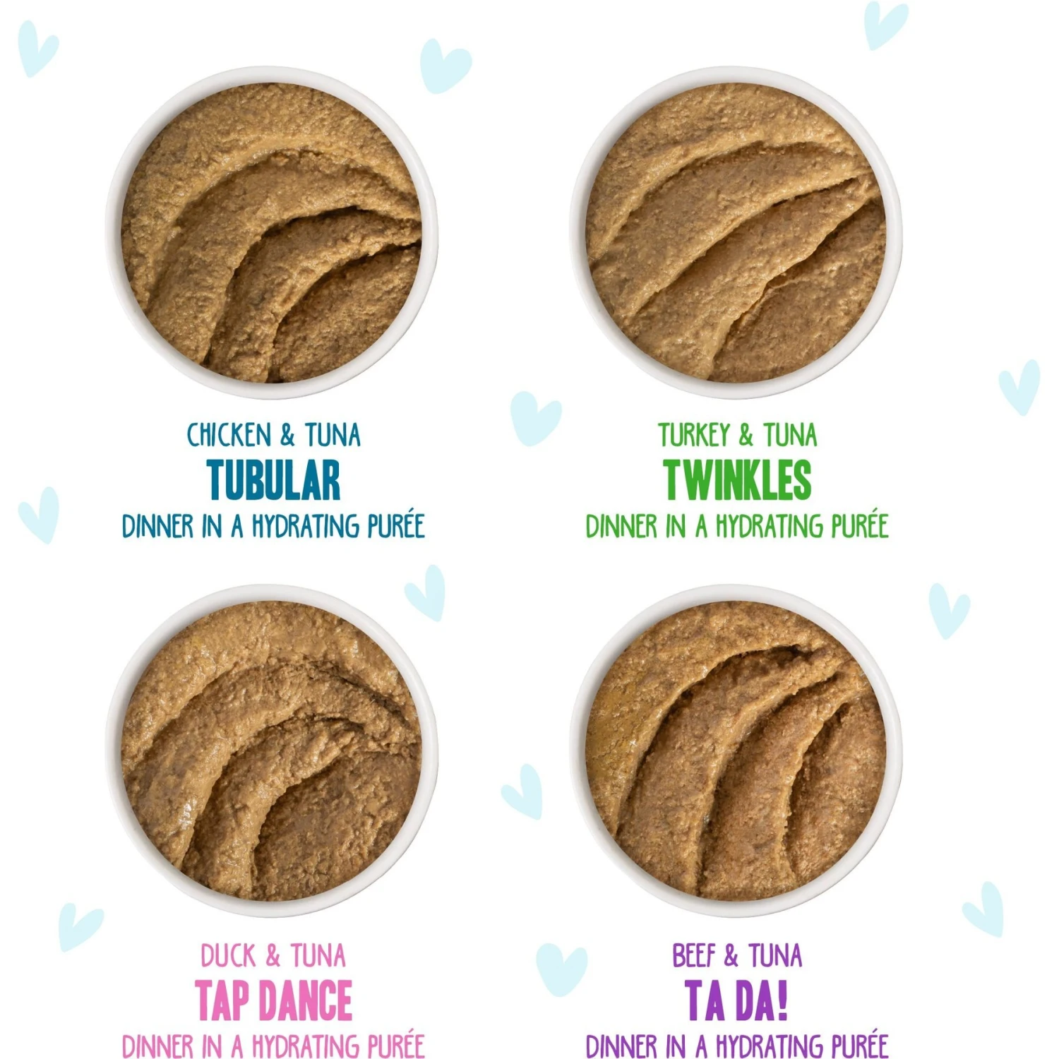 - 4 whisker-licking, all-natural wet cat food recipes crafted with proteins from land and sea, and packaged in an easy-to-serve, Slide N’ Serve Pouch.