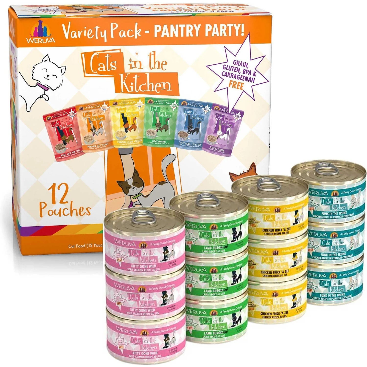 Treat your kitty to the whisker-licking nutrition of Weruva Cats in the Kitchen Variety Pack Grain-Free Cat Food Pouches + Cuties Variety Pack Grain-Free Canned Cat Food. The easy-to-serve pouches are an excellent way to supply your cat with necessary hydration. Plus, he’ll love the variety of tasty ingredients, like cage-free chicken, wild-caught tuna and wild-caught mackerel! Also from Weruva, the Cuties variety pack includes gravylicious recipes with real meat as the top ingredient for easily-digestible protein to support healthy muscles. Plus, every bite is loaded with vitamins, minerals, omegas and antioxidants for overall health, and lots of hydration from real broth!