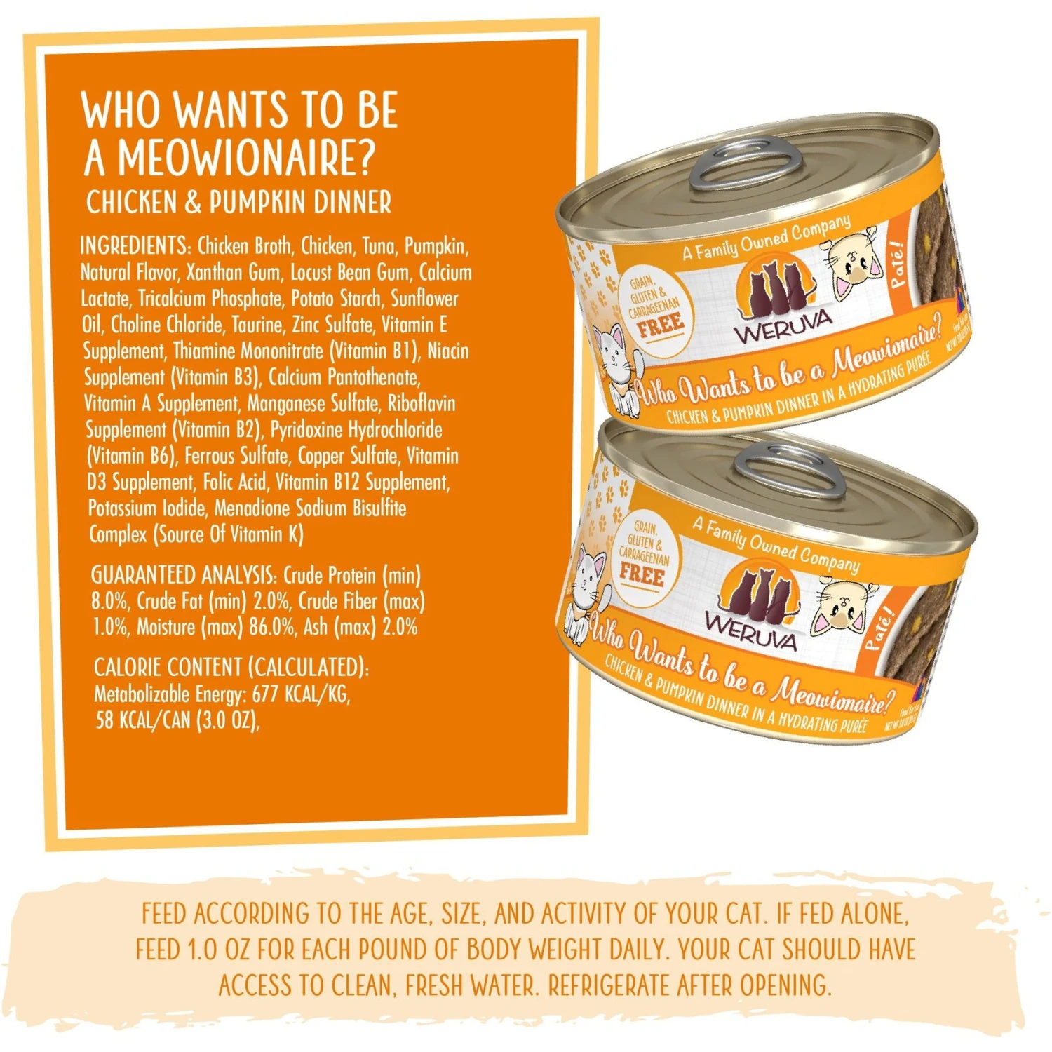Go ahead and phone a fur-iend! If you need to choose a meal for your kitty, we know Weruva’s Classic Cat Who wants to be a Meowionaire Chicken & Pumpkin Pate is the million-dollar answer. This winner-winner chicken and pumpkin dinner is pureed into a paw-fect, silky pate that’s sure to have her licking her bowl clean. You’ll feel good about how you’re nourishing her with the simple wholesome ingredients that you can actually see in the food! Not only is it grain-free, but it’s also made without those not-so-desirable ingredients like gluten, carrageenan and artificial flavors and colors. It will leave your furbaby feline good with the high moisture content that meets her needs. Plus, there are a variety of flavor options with Weruva so you can help kitty find her fur-avorite.
