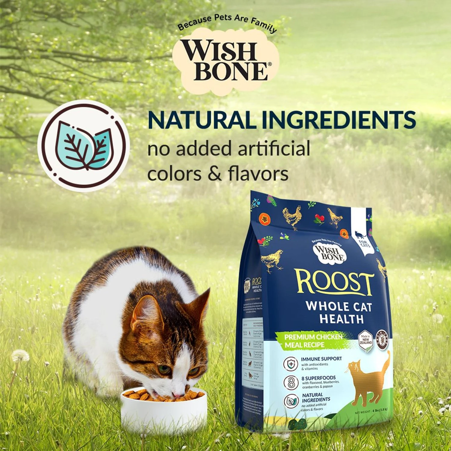 Treat your kitty to the deliciousness of Wishbone Roost New Zealand Chicken Grain-Free Complete Cat Health Dry Cat Food. This meal is crafted with only the finest New Zealand ingredients, selected for their exquisite flavor and nutrient-dense goodness. Each bite will leave your furry friend begging for more. This holistic formula is expertly crafted to maintain a healthy balance of animal ingredients and functional ingredients to create a recipe that supports healthy hearts, bright eyes, healthy skin, shiny coats, happy tummies and healthy muscles and bones. Using the power of eight nutrient-rich herbs, fruits, and vegetables, along with taurine and essential vitamins and minerals, this kitty food is designed to boost your furbaby’s immunity from within.