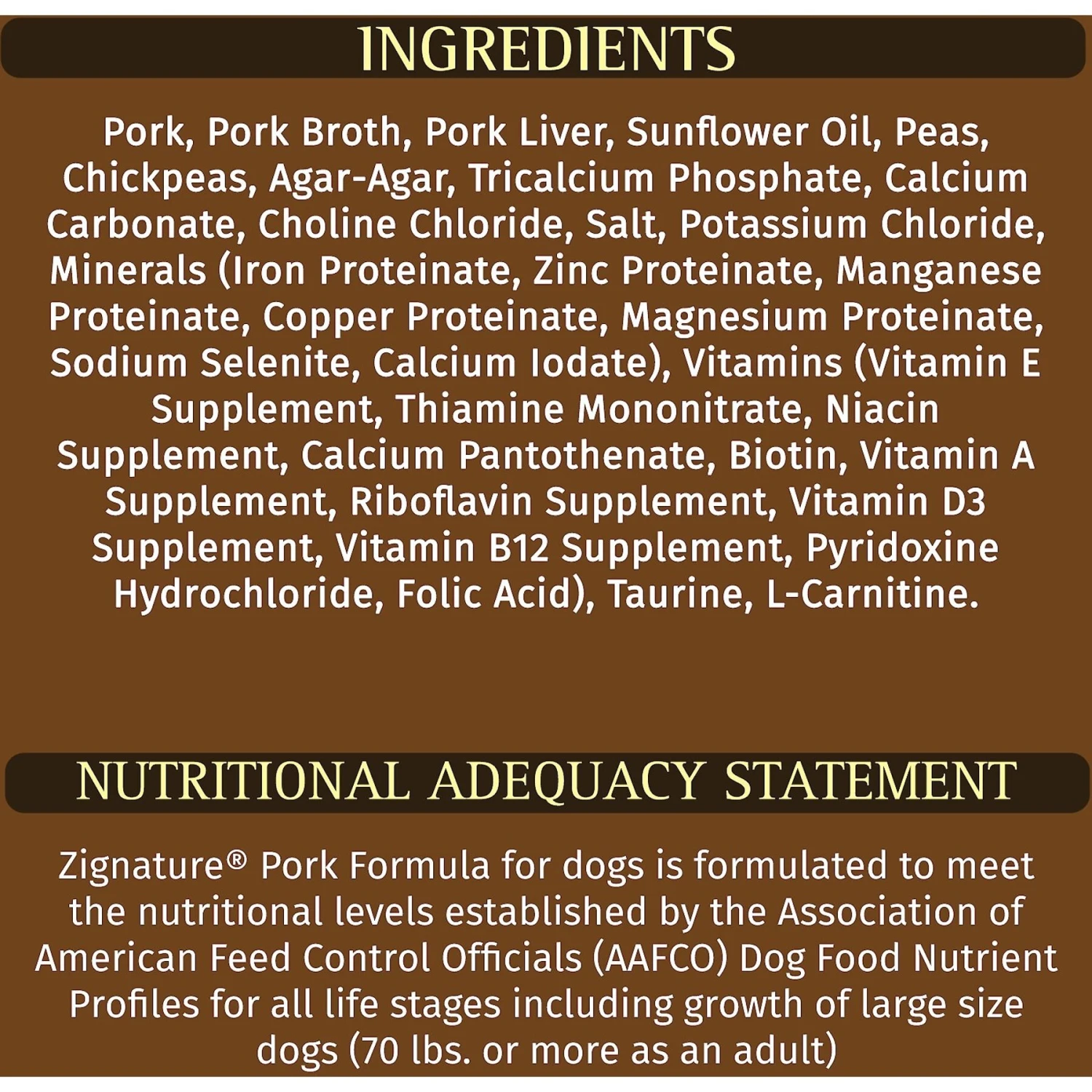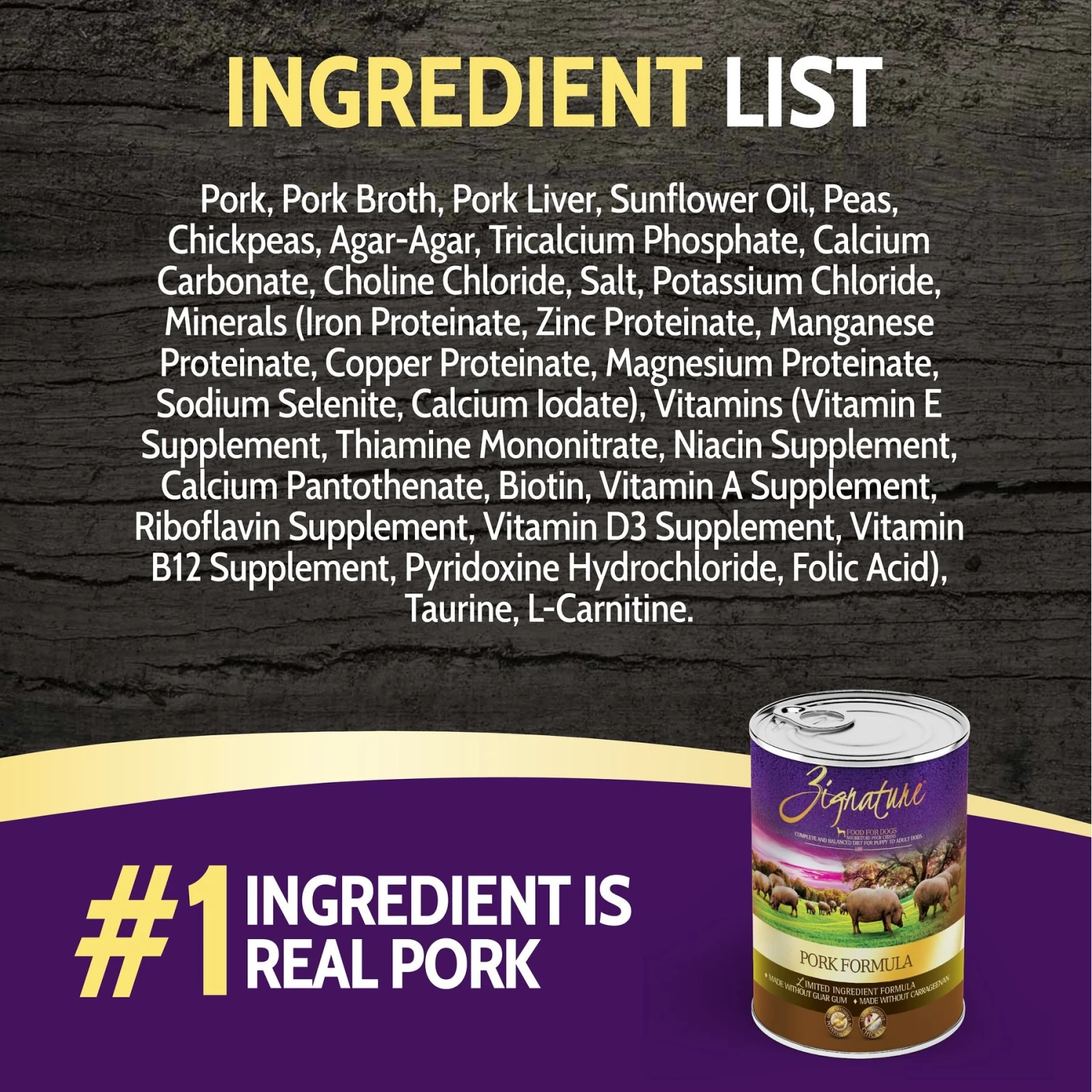 Keep your pal healthy and hydrated with Zignature Pork Limited Ingredient Formula Canned Dog Food! This limited ingredient wet food features real pork as the first ingredient. Pork is a highly digestible protein that’s rich in amino acids, so it may be a good choice for pups with food sensitivities. Plus, each can provides at least 78% moisture to support your dog’s daily hydration goals. Talk about lip-smacking goodness!