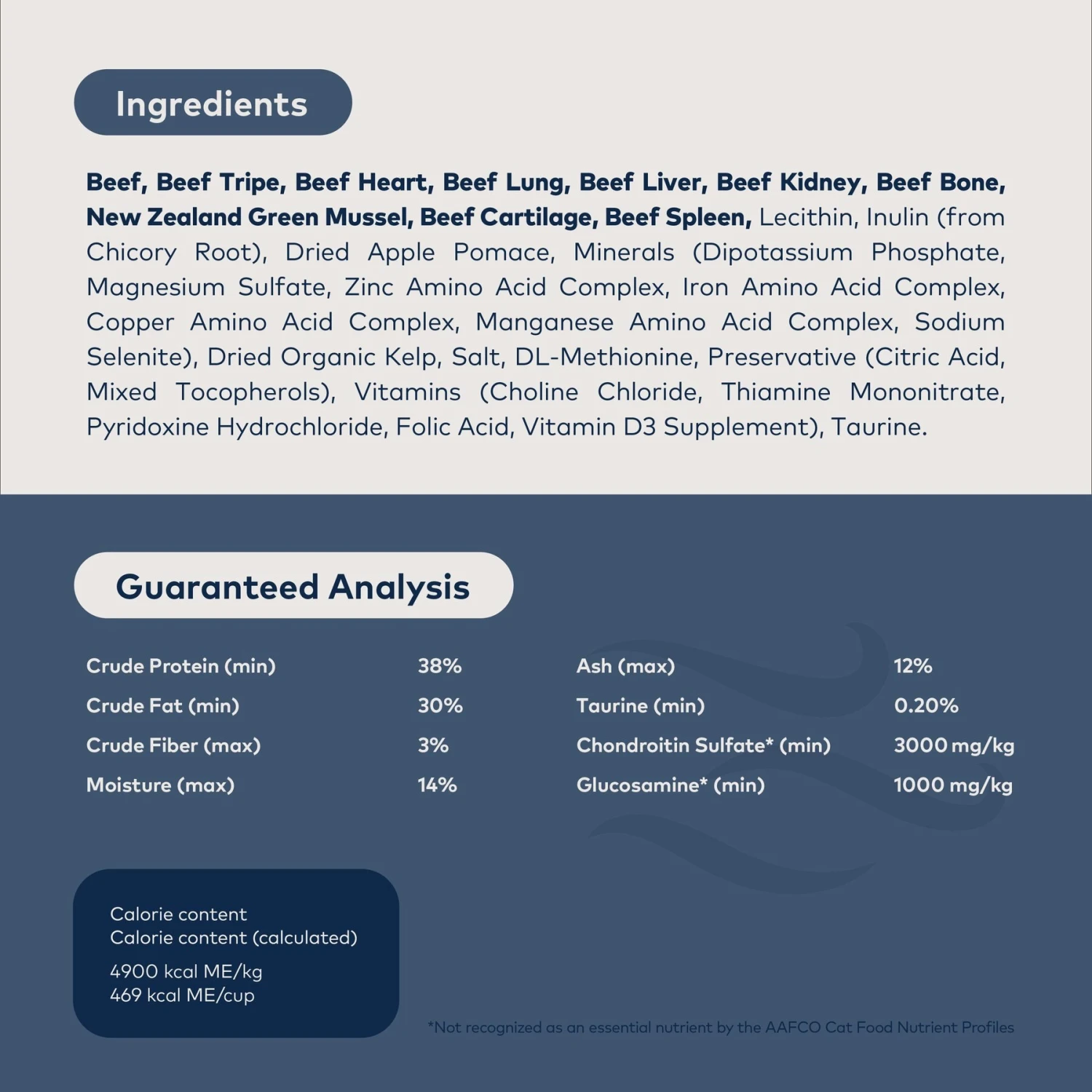 - Naturally promotes mobility, vitality and overall well-being with 10% superfood inclusions of cold-washed green tripe, New Zealand green mussels, and organic kelp.