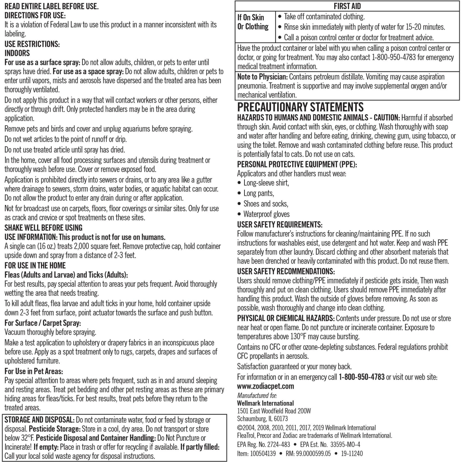 Say goodbye to household pests with Zodiac Carpet and Upholstery Aerosol Spray! This convenient spray works to kill fleas, ticks, houseflies, mosquitoes, gnats, lice and other listed insects. Each application offers up to seven months of protection against infestations and flea build up. The convenient spray trigger leaves behind no sticky messes, lingering odors or stains. Zodiac Carpet and Upholstery Aerosol Spray makes a great addition to your regular flea regimen!